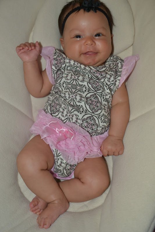 I took pictures of Amarah in an old outfit of Alayah's. Amarah is 2 months and Alayah wore it when she was 5 and 6 months lol. Crazy to me how much different they are in size.